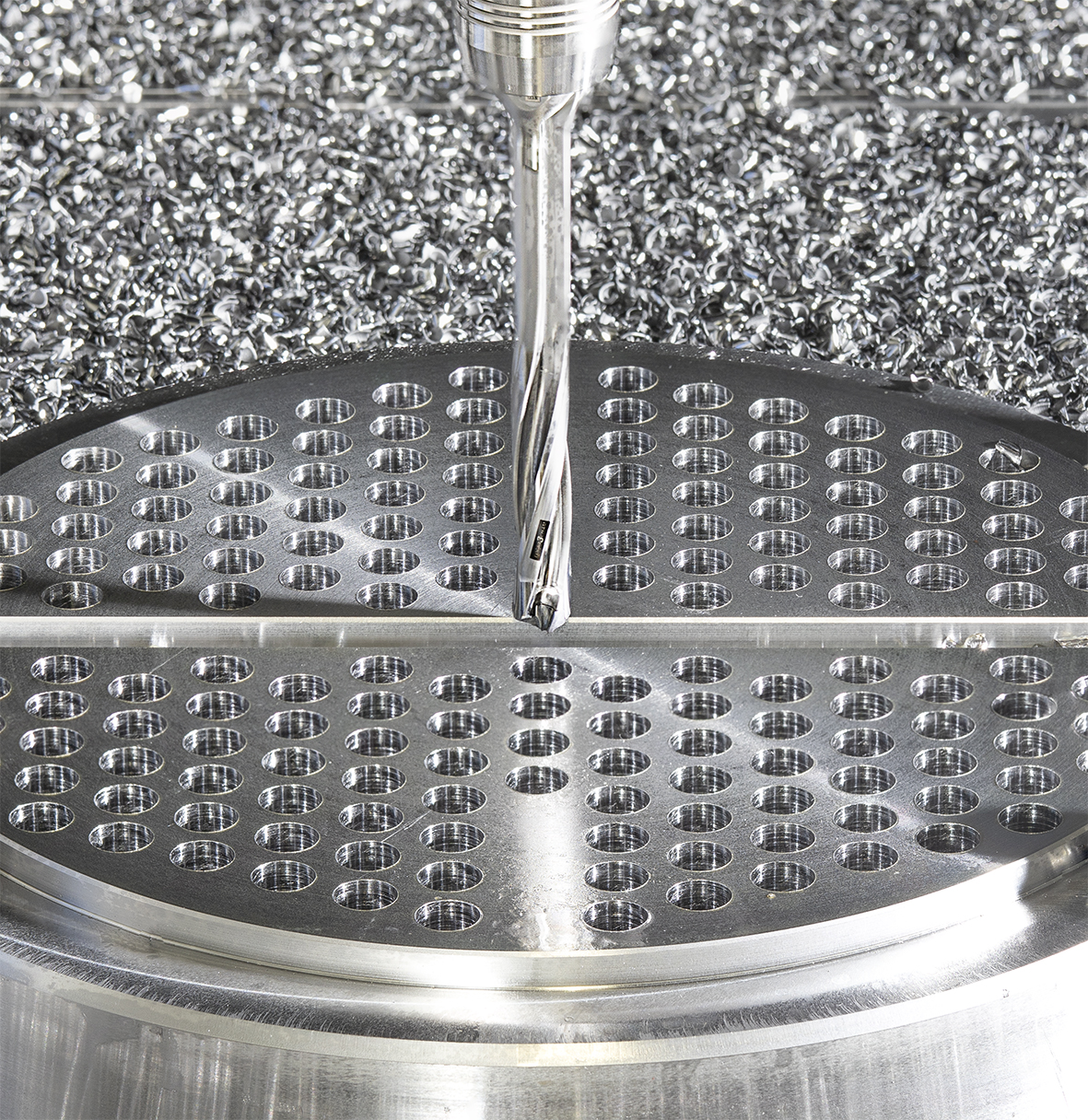在钻削加工中,尤其是钻深孔时,有效排屑非常重要。仅通过刀头形状的先进设计以优化切屑成型是不够的。排屑凹槽需确保切屑流能顺畅排出。毋庸置疑,三个排屑凹槽的排布会削弱钻杆;在相等直径下,相比于带2个排屑凹槽的钻头,带3个排屑凹槽的钻杆刚性更弱。随着钻深的增加,可能发生沿轴线方向的振动,这会缩短刀具寿命,对加工孔的精度及表面质量产生不利影响。钻杆刚度的降低形成了钻深的瓶颈,最大钻深受限于5倍径。
