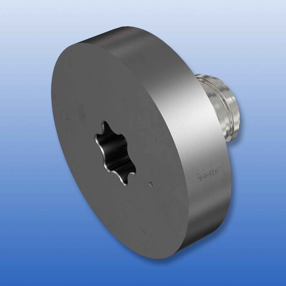 [Fig. 4- A disc-type blank head is ideal for customized solutions in milling slots and grooves. The hexalobular recess in a head face is intended for applying TORX-tipped wrenches with controlled torque for reliable clamping.]